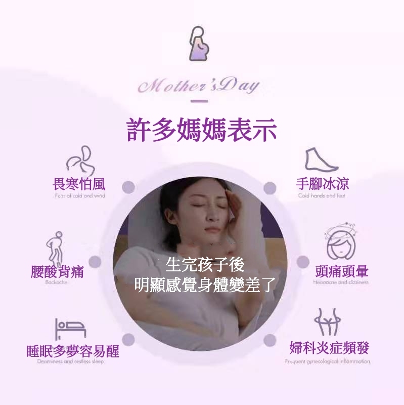 主打功能: 不孕症; 暖宮;養護子宮; 產後腰腹痛; 帶下痛;子宮肌瘤; 附件炎; 月經不調 ; 經痛; 閉經; 更年期綜合症; 改善手足冰冷; 改善經痛及各種婦科病症