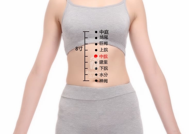 功效: 中脘穴是四條經脈的會聚穴位,同時號稱胃的"靈魂腧穴"。 具有健脾和胃,補中益氣之功。 調理各種胃腑疾患。